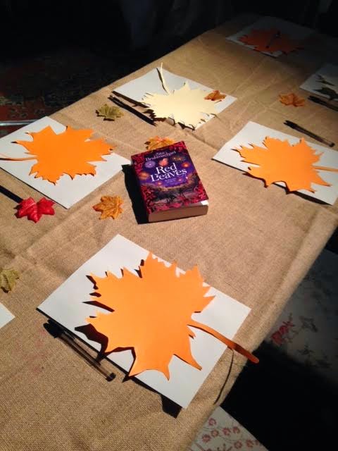 In creative writing workshop today twenty young people imagined that they, like my characters in 'Red Leaves' were hiding out in an air raid shelter on the eve of Halloween. They threw red leaves in the air, caution to the wind, let their imaginations flow and produced some beautiful writing.